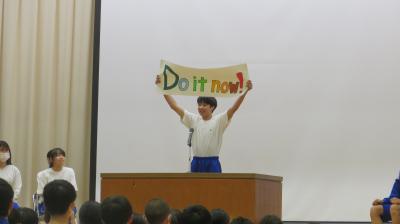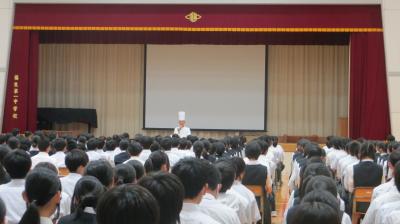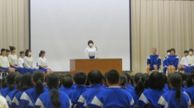 昨日の朝は、生徒朝礼がありました。