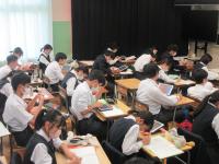 9日(祝)から11日(水)まで修学旅行を実施し、12日(木)が振替休みであったため、3年生は久しぶりに一中へ登校しました。今日は修学旅行の作文を6時間目に書きました。一人一人がどのような作文を書きているのかとても気になりました。仕上がりが楽しみです。