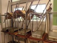 各クラスでは不審者が教室の中に入ってこれないよう机と椅子を使ってバリケードを組みました。