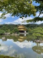 鏡湖池には、天気が良いため金閣寺がはっきりと映っておりました。
