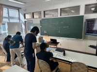 8組の数学の授業の様子です。「あまりのない割り算、あまりのある割り算の解き方」を理解することを目標とした授業でした。教員は「おはじき」等、生徒一人一人に合わせた教材を準備し、個に合わせた指導を行っていました。難しい課題も、このように具体物を使うと、非常に分かりやすいです。一中では通常級、特別支援学級問わず、生徒一人一人に合わせた授業を今後も目指していきます。