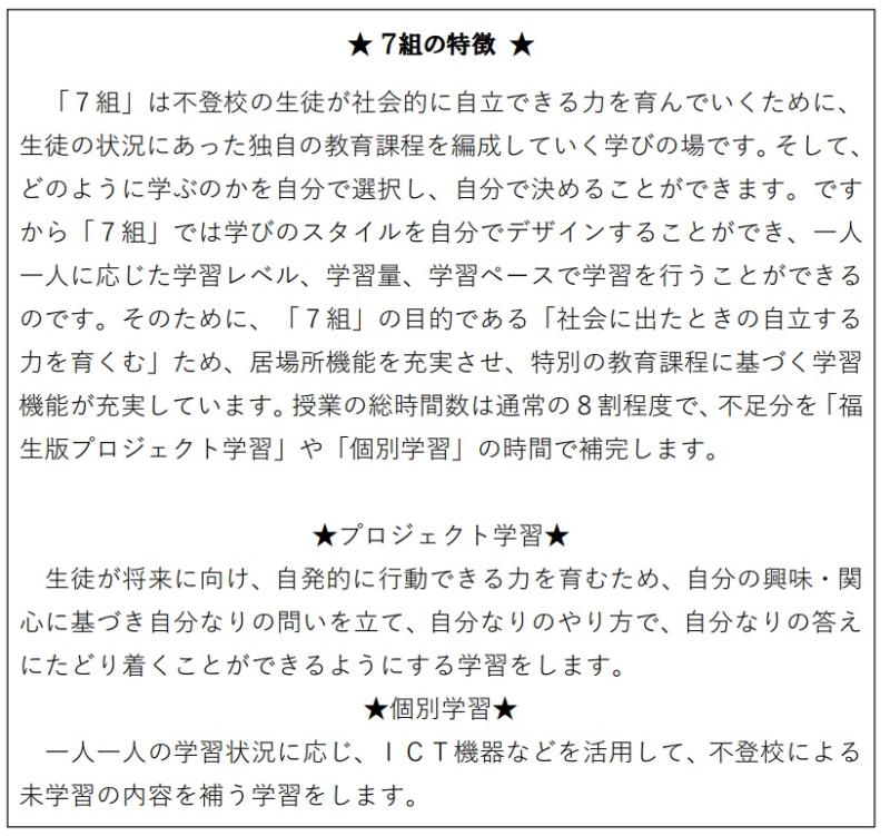 福生市教育委員会のHPにも『7組』の説明が掲載されています!