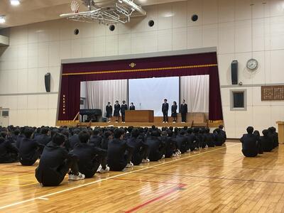 生徒会本部役員からは、後期の取り組みの成果と課題についての話がありました。