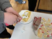 5枚の紙とテープ、はさみを使って、より高い位置にビー玉を置くための構造物(ペーパータワー)の作製に挑戦しました。