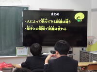 関係性やその日の気持ちで適切な距離が変わること、それを自分で判断して他者と関係を築いていくことなどについて考えました。