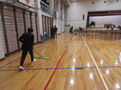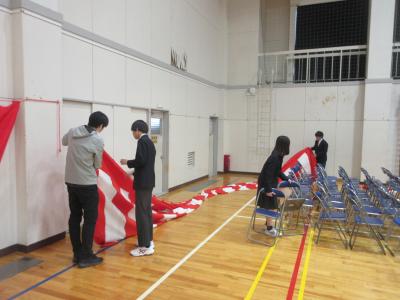 本日は、明日に控えた卒業式の会場準備がありました。