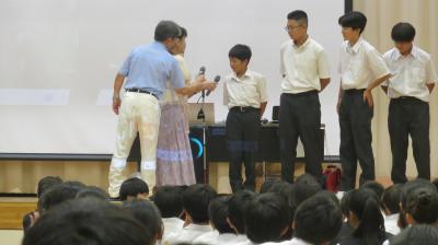 質問コーナーでは、11月の「Communication&Skill」の“Japanese Culture”で扇子を調べた生徒から、