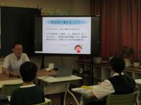 まず、茶道の歴史や茶室の部屋の構造、掛け軸の意味など、福生市茶道連盟の島田先生に教えていただきました。